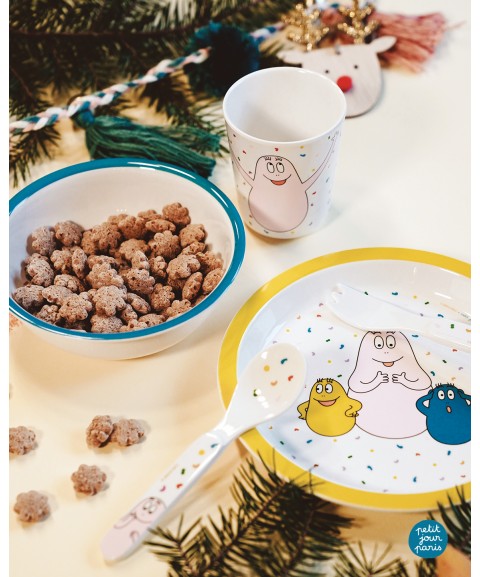 This 5 piece tableware gift set includes everything a child needs to have a fun and safe meal: a plate, a bowl, a 2 piece cutlery set and a drinking cup.