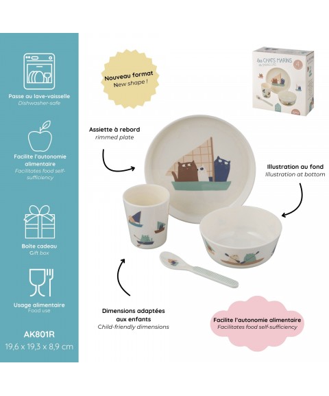A lovely 4-piece set with ergonomic rims to help children pick up food and eat almost entirely on their own.