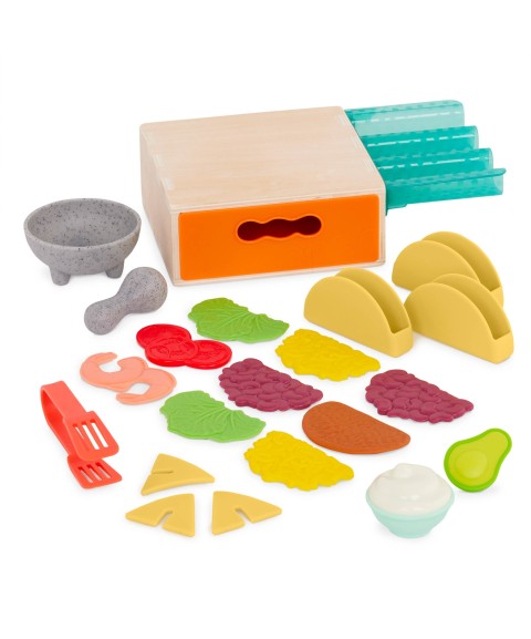 With this taco set your child will be able to express its culinary taste ! Pretend cooking stimulates children's creativity, improves social skills and develops dexterity.