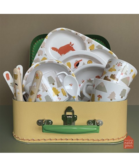 This 5 piece tableware gift set includes everything a child needs to have a fun and safe meal: a plate, a bowl, a 2 piece cutlery set and a drinking cup.