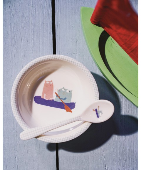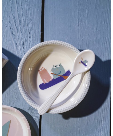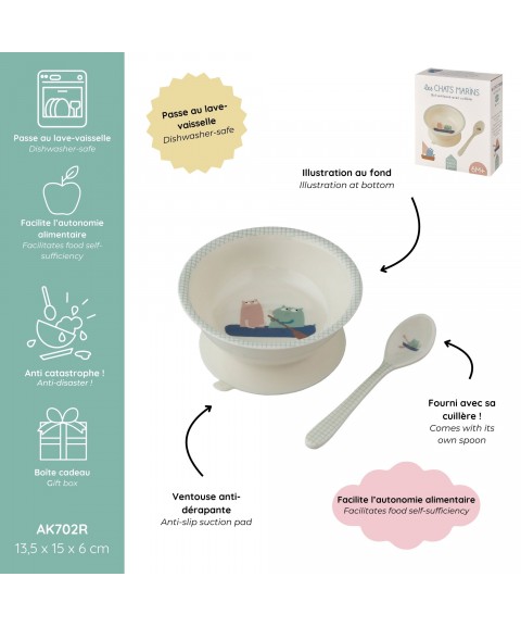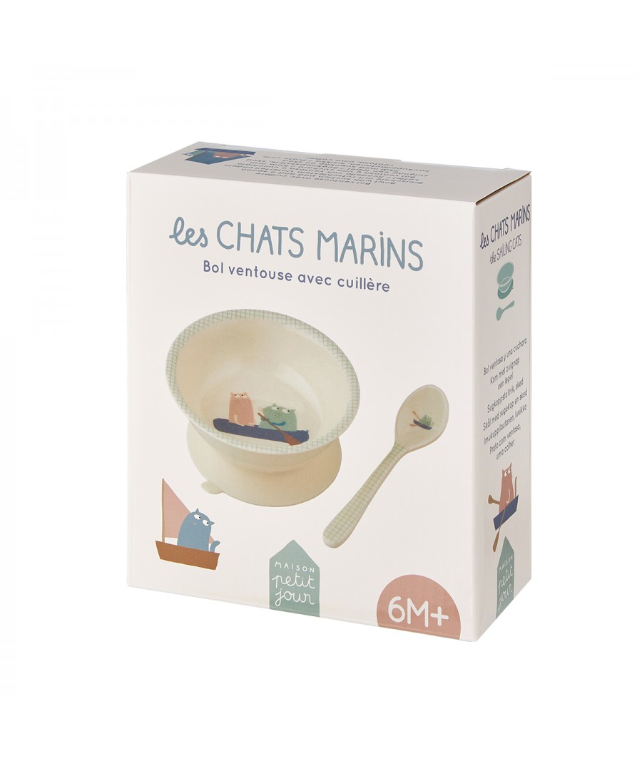 BOL VENTOUSE AVEC CUILLÈRE LES CHATS MARINS