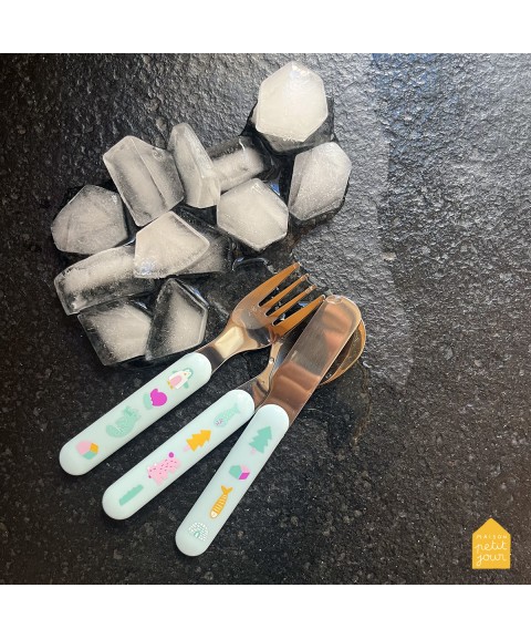 Il est composé d'une fourchette, d'un couteau et d'une cuillère en inox.