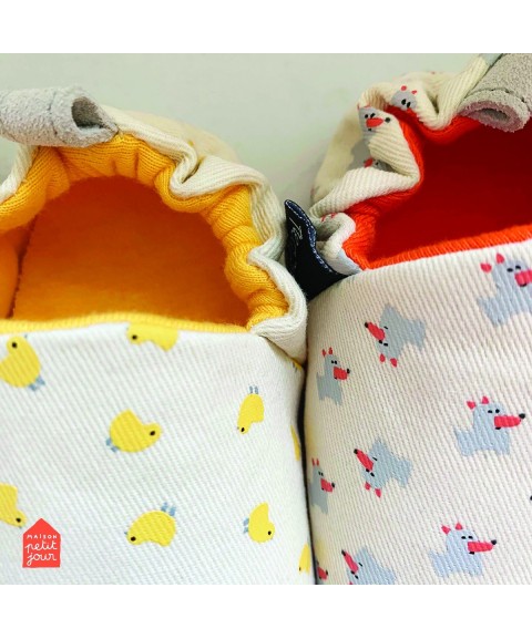 Ils possèdent une petite languette en daim pour enfiler les chaussons plus facilement, ainsi qu'un élastique pour éviter de les perdre pendant la balade ! Ils sont en coton tout doux, très agréables à porter par les bébés. Sa semelle en daim évitera aux petits de glisser pendant leurs premiers pas.